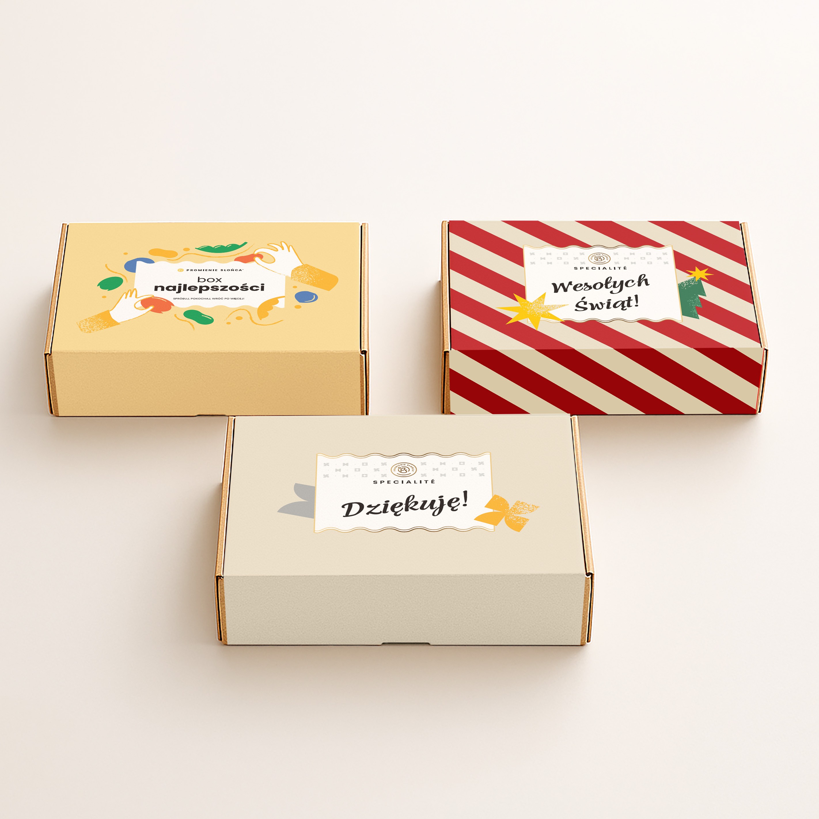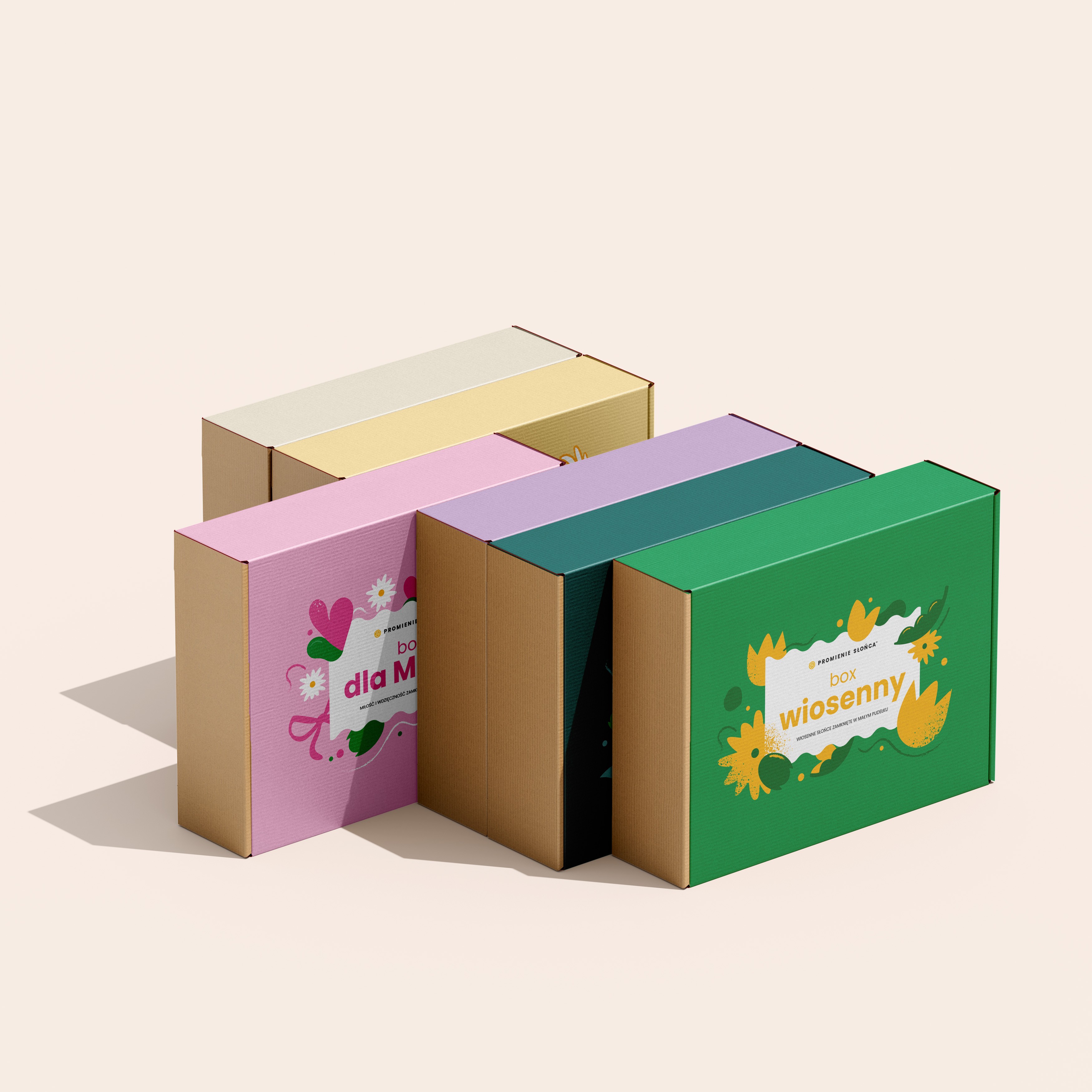 Promienie to brand rodzinnym i przyjazny, budzący zaufanie i ciepłe skojarzenia, bazując na wartościach takich jak radość i kreatywność. Ze względu na wciąż rozwijającą się ofertę boxów prezentowych powstały serie projektów, w której główną rolę odgrywają ilustracje i dopasowana kolorystyka.
